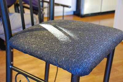 A couple other uses for the fabric I bought was to make a little fabric cozy to cover the former navy blue sewing bench, which easily removes so I can still use the bench for storing and I also used it to cover and add a pillow to the white chair. Now I have room for multiple people to join me in my new craft haven, so come on over! I think it has gone from a true crap-room to a usable craft room.